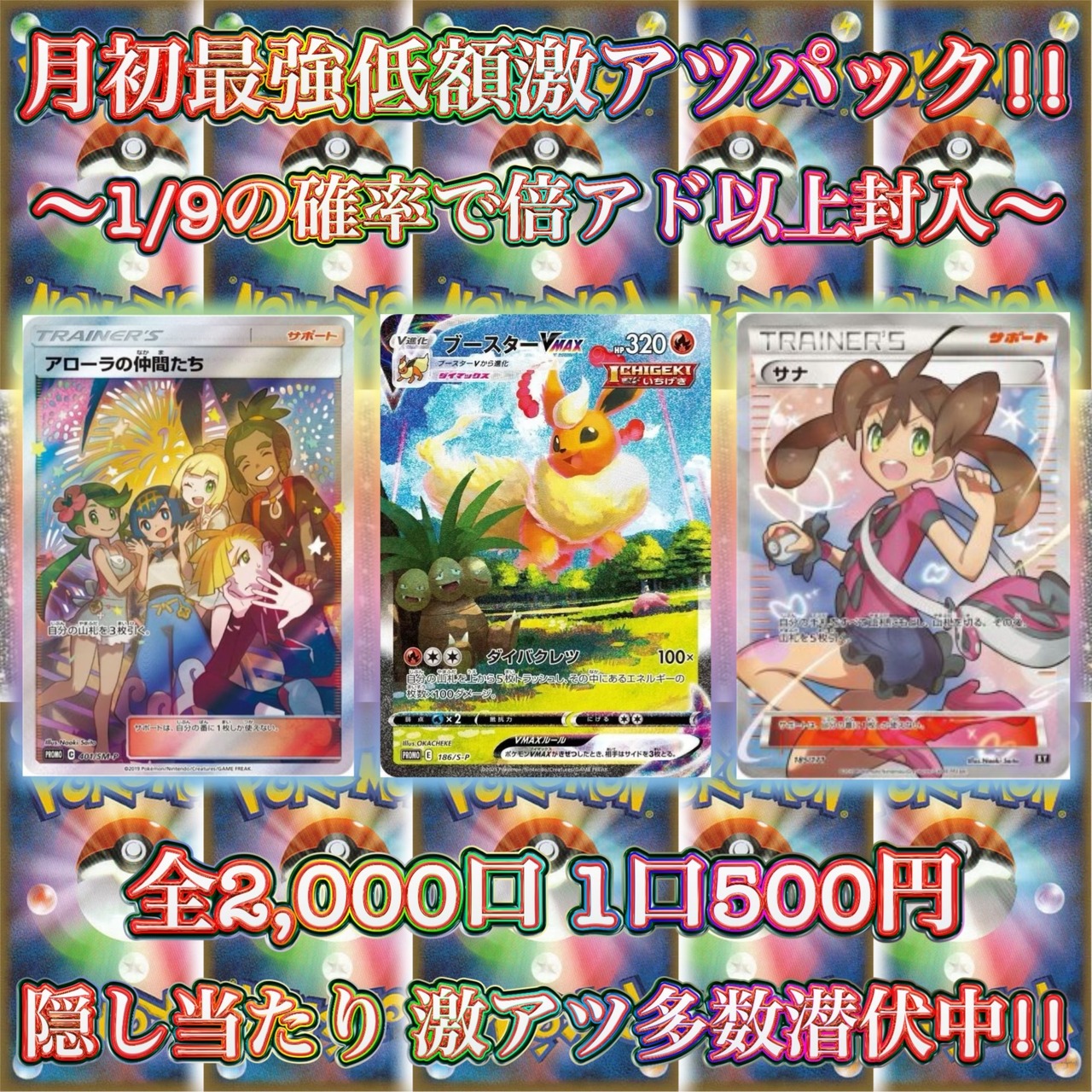 11/1 ポケカ 月初最強低額激アツパック!! 〜1/9の確率で倍アド以上確定〜 ポケモンカード オリパ くじ